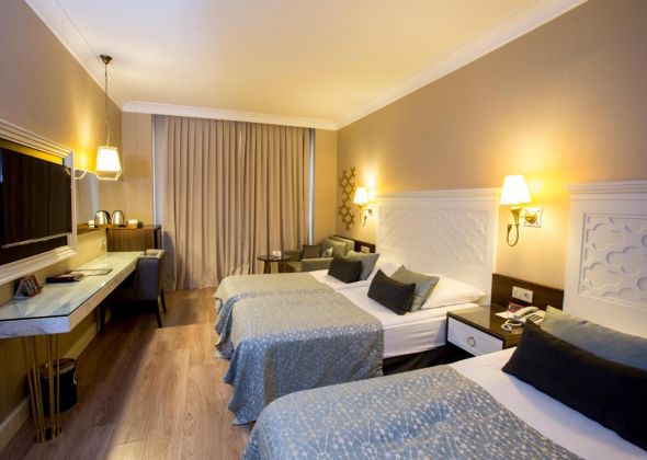 220 Standard room (22 м2), 24 Family room (2 спални, 1 баня - 30 м2), 2 Handicapped room (пригодени за хора с ограничена подвижност – 22 м2).