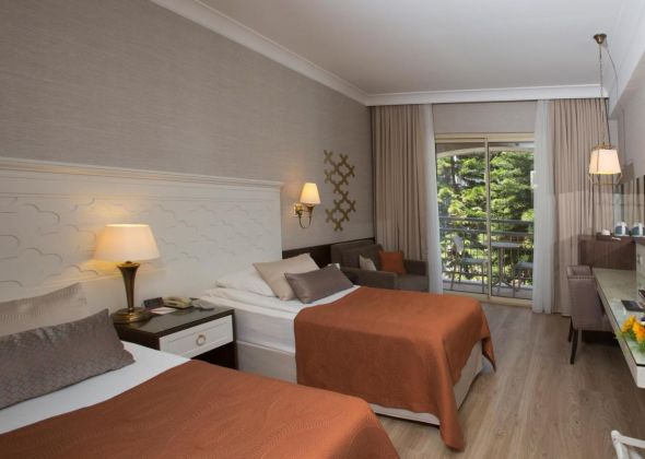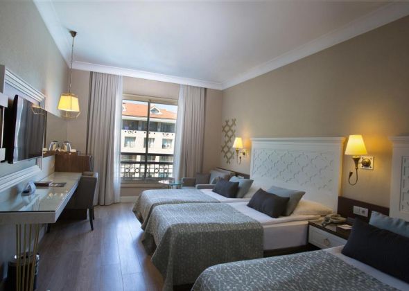 Основен ресторант, 3 а-ла-карт ресторант ( рибен, турски, италиански – срещу заплащане с предварителна резервация), снек ресторант, 6 бара, открит и закрит басейн, СПА център, дискотека, магазини.