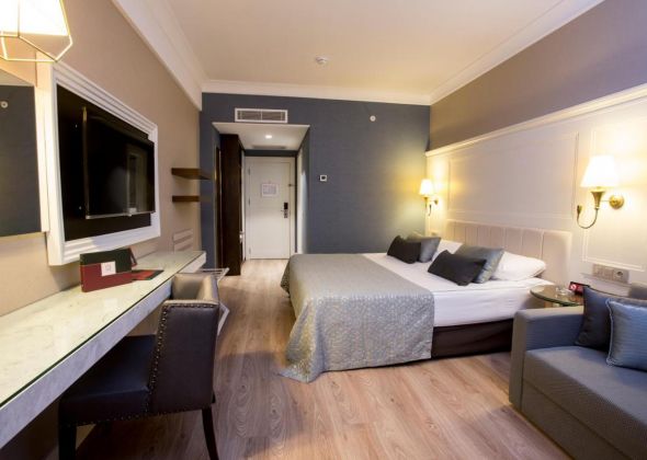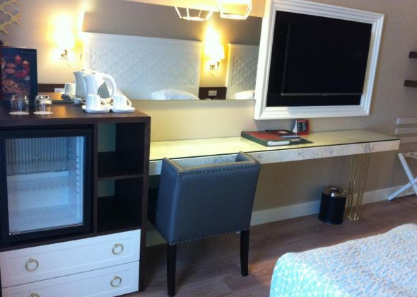 Всички стаи са оборудвани с климатик, телевизор, телефон, баня с душ, сешоар, сет за чай/кафе, минибар (безплатен), сейф (безплатен), френски балкон или тераса.