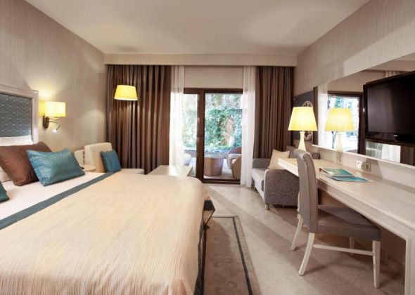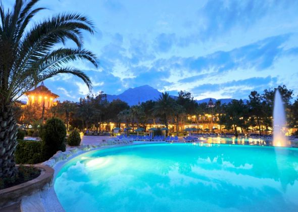 Основен ресторант, 4 а-ла-карт ресторанта, 6 бара, 4 конферентни зали, 1 закрит и 1 открит басейн, водни пързалки, детска площадка. За децата: детски бюфет, детско меню, детски басейн, детска площадка, мини-клуб (4-12 години), компютърни уроци (5-14 години, безплатно), мини-зоопарк, детска количка (в ограничени количества – с депозит), детегледачка (платено) Безплатни услуги - финтес център, сауна, турска баня, тенис кортове, плажен волейбол, баскетбол, дартс, анимационни програми, безжичен интернет. Платени услуги - масаж, уроци по тенис, водни спортове, лекар, пералня, фризьор, уроци по тенис, водни спортове.