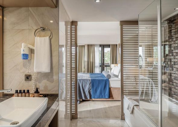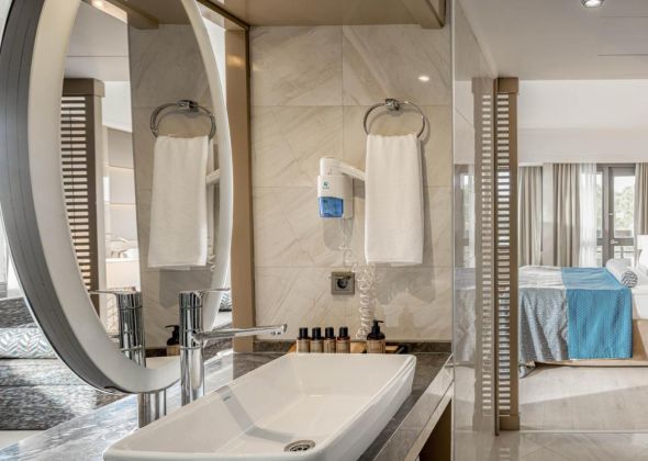 Хотелът разполага с общо 346 стаи, от които 148 Standard room (39 м2), 40 Standard Room Side Sea View (със страничен изглед море – 39 м2), 80 Garden Family (1 спалня, 1 дневна – 45 м2), 26 Junior Suite (48 м2), 12 Junior Suite Sea View (с изглед море - 48 м2), 18 Family Suite (1 спалня, 1 дневна – 75 м2), 14 Villa Dublex (2 спални, 1 дневна - 100 м2), 2 Executive Deluxe Suite (1 спалня, 1 дневна – 75 м2), 2 Executive Family Suite (1 спалня, 1 дневна – 75 м2), 2 Executive Suite ((2 спални, 1 дневна, 2 бани – 98 м2), 2 Executive Standard Room (39 м2).