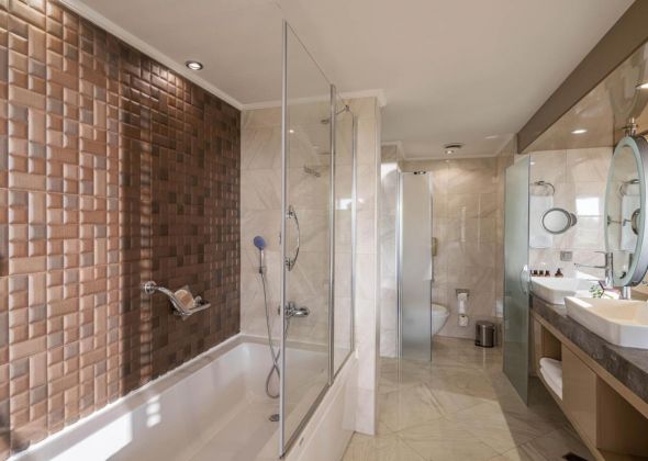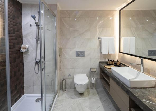 Всички стаи са оборудвани с климатик, телевизор, телефон, баня с душ/вана, сешоар, сет за чай/кафе, минибар (зарежда се всекидневно с вода и безалкохолни напитки - безплатно), сейф (безплатен), балкон.