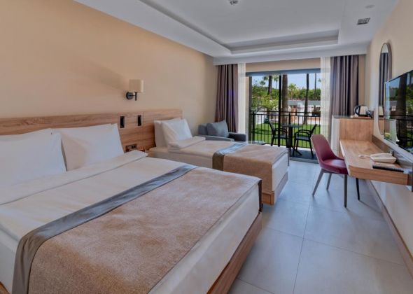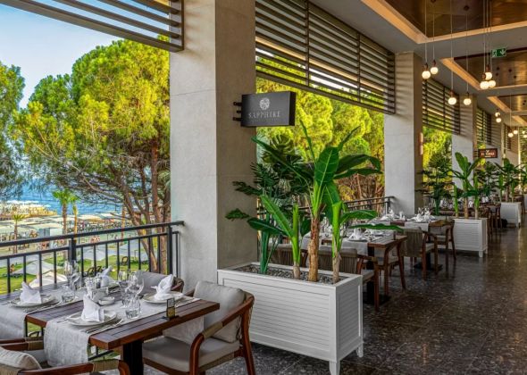Хотелът разполага с основен ресторант, 3 а-ла-карт ресторант(рибен, турски и италиански, срещу доплащане), 6 бара, 3 басейна и 1 вътрешен, водни пързалки, СПА център, магазини. За деца: 2 външни и 1 вътрешен басейн, Пеги клуб(4-14г.), бъги, детегледач, детско меню, анимация за деца.