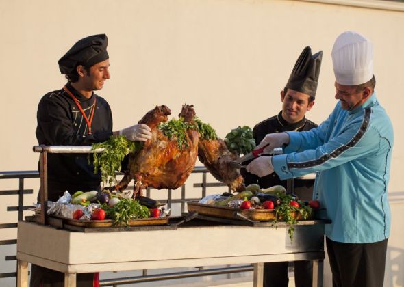 Основен ресторант, 1 а-ла-карт ресторант (1 безплатно посещение при минимум 7 нощувки), снек ресторант, 4 бара, 1 открит басейн, водни пързалки, амфитеатър, конферетнта зала, паркинг.