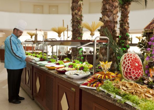 All Inclusive - закуска, обяд и вечеря на шведска маса, междинни хранения, местни алкохолни и безалкохолни напитки - без лимит (съгласно концепцията на хотела).
