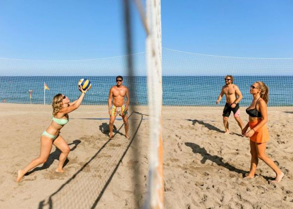 Собствен, пясъчно-чакълест, платформа. Чадъри, шезлонги и плажни кърпи на плажа и при басейна – безплатно.