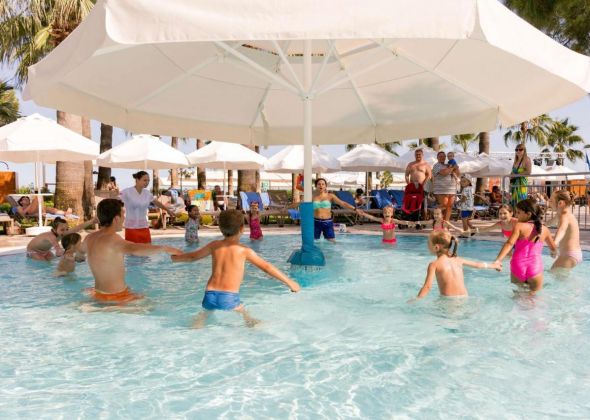 За децата: Детски ресторант Elmo, детски басейн, бебешки басейн, детска площадка, бейби клуб (0- 4г), стая за кърмене и преобличане,  кухня за майки, мини клуб (4-12г), 2 къщи за игри, Lego play room, PlayStation конзоли, мини диско, детска анимация, специални детски програми, рисуване,  уроци по плуване, детски карнавал, детска количка (под наем).