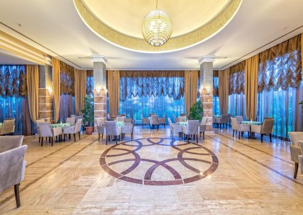 Основен ресторант, 2 ресторанта A'la Carte (турски и рибен - 1 посещение за 7 дни, безплатно на един от ресторантите), 6 бара, дискотека, 2 открити басейна, 2 пързалки, вътрешен басейн, Спа център, магазини, фризьорски салон, лекар, пране, 6 конферентни зали.