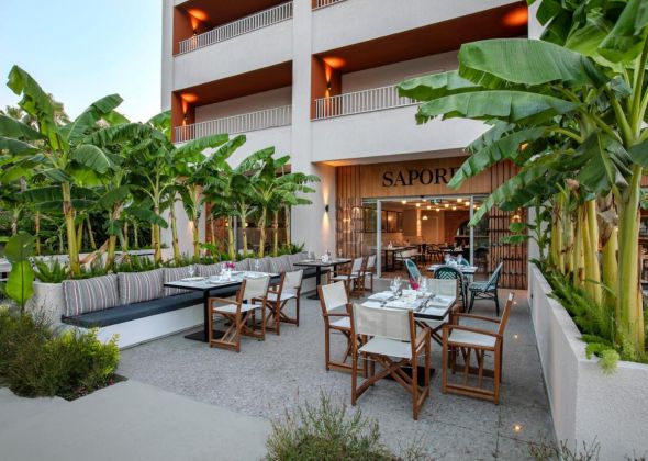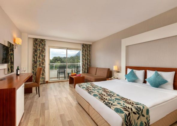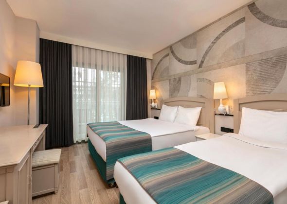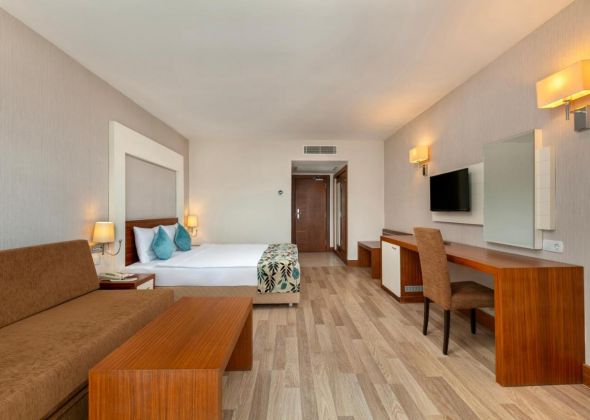 Основен ресторант, 2 снек ресторанта, сладкарница, 1 а-ла-карт ресторант (италианска кухня, с предварителна резервация - с доплащане), 3 бара, дискотека (с доплащане), основен открит басейн, вътрешен басейн, аквапарк с 5 пързалки за възрастни и 4 пързалки за деца, СПА център, фитнес, хамам, сауна, тенис на корт, магазини, WI-FI, външен паркинг.