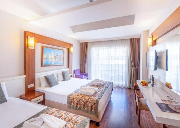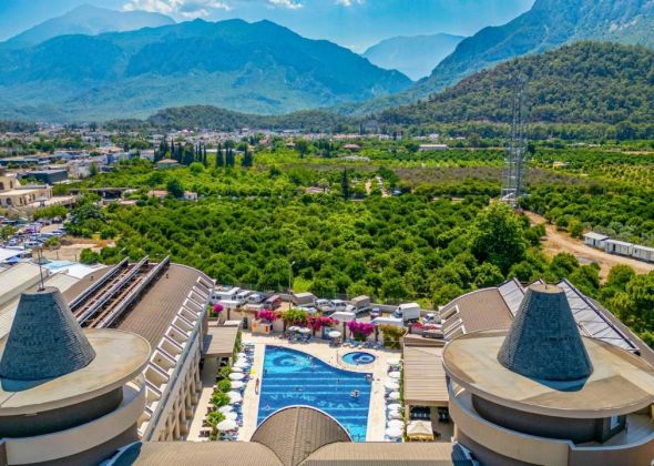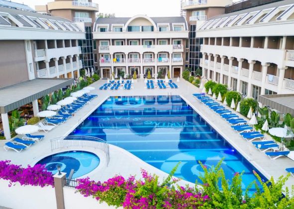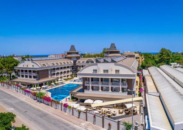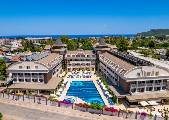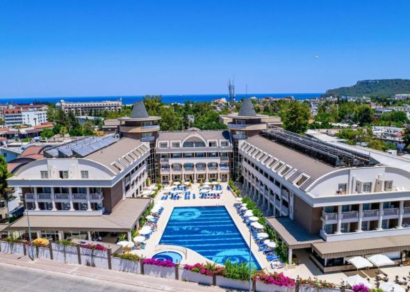 Намира се на 600 м от брега на морето, на 45 км от центъра и на 55 км от летището в Анталия. Хотела заема площ от 6 000 м2.