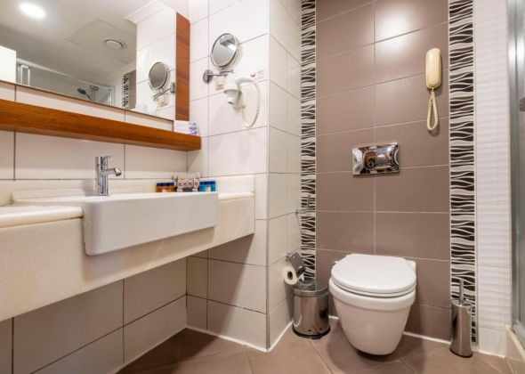 Душ, сешоар, централен климатик, телевизор, сейф (срещу заплащане), мини-бар, килим, балкон, ежедневно почистване на стаите, смяна на спалното бельо три пъти седмично, румсервиз (срещу заплащане)