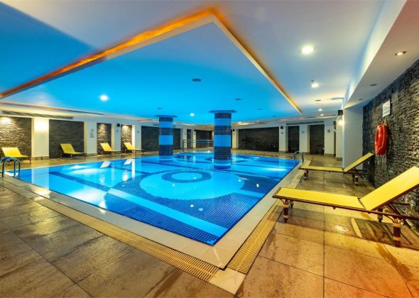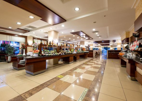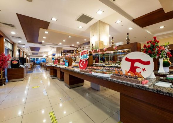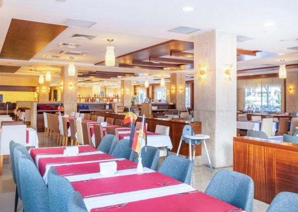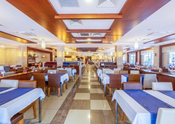 Основен ресторант, 2 открити басейна (350 и 97 кв.м), 2 закрити басейна, анимация, амфитеатър, дискотека (безплатно), обмен на валута, зала с телевизия, зала с игри (безплатно), магазини, конферентна зала (250 човека), паркинг, турска баня, сауна, фитнес център, дартс, тенис на маса, безжичен интернет в лобито на хотела