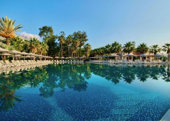 Намира се на 70 км. от летище Анталия, на 18 км. от центъра на Кемер, на брега на морето. Общата площ на хотела е 120.000 м2, напълно реновиран през 2023г.
