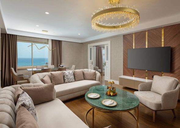 Хотелът разполага с общо 328 стаи, от които 262 стандартни стаи, 64 фамилни стаи и 2 кралски апартамента. Всички стаи са оборудвани с: централен климатик, сателитна телевизия, телефон, безжичен интернет, баня с вана, сешоар, мини бар – зарежда се ежедневно с вода, безалкохолни и бира, сейф, балкон. Почистване на стаите и смяна на кърпите – всеки ден, смяна на бельото – 3 пъти в седмицата.