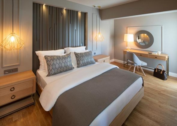Всички стаи са оборудвани с климатик, телевизор, телефон, баня с душ, сешоар, чехли, сет за чай/кафе, еспресо машина, минибар (безплатен), сейф (безплатен), 4 таблета (ежедневно - безплатно), ютия и дъска за гладене (за целия престой - при поискване).