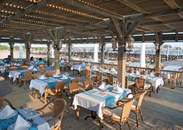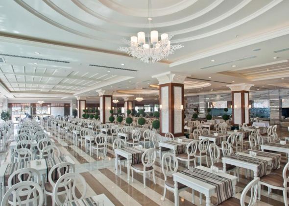 Основен ресторант с диетично и вегетарианско меню, 5 ресторанта a - лa - карт (италиански, турски, рибен, мексикански, китайски), 6 бара, открит басейн, закрит басейн, 3 водни пързалки, кинотеатър, лекарски кабинет, SPA - център, фризьор, магазини,2 конферентни зали. За децата: детско меню, детски басейн, аквапарк, детски мини клуб(4-12г.), младежки клуб(13-16г.) Безплатни услуги: турска баня, сауна, вътрешен басейн, тенис на корт, тенис на маса, дартс, мини голф, баскетбол, фитнес зала, Интернет. Платени услуги: масаж, билярд, боулинг, кан, водни спортове, фризьор, СПА - център.