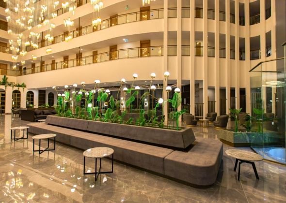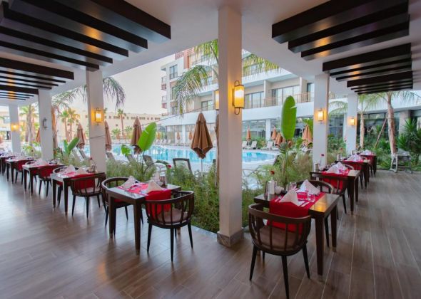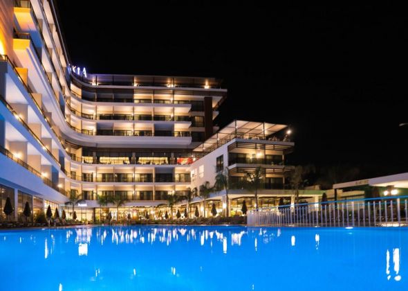 Основен ресторант, снек бар, лоби бар, бар при басейна, сладкарница, 1 открит и 1 закрит басейн (отопляем - според концепцията на хотела), конферентна зала.