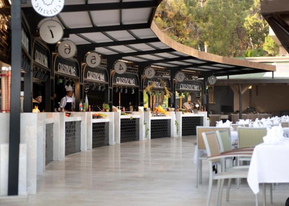 Основен ресторант, 4 а-ла-карт ресторанта (азиатски, италиански, стек хаус, интернационален – срещу заплащане, с предварителна резервация), 1 снек ресторант, сладкарница, 8 бара, 3 открит и 1 закрит басейн, 3 водни пързалки, амфитеатър, СПА център, дискотека, магазини, 1 конферентна зала.