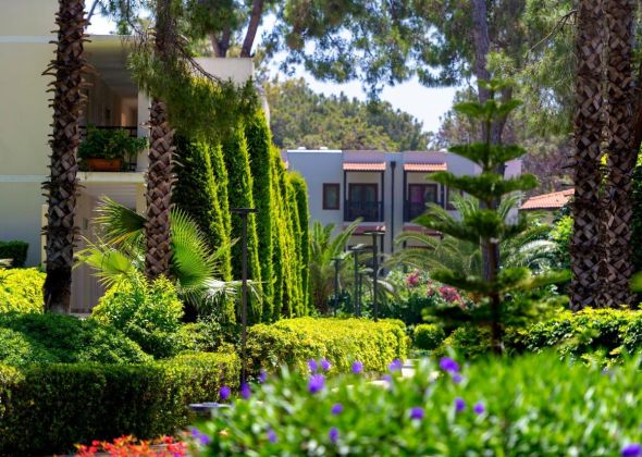 Стаи Garden Block: Standard Room Garden Block (изглед градина, 27-28 м2), Family Land View Garden Blocks (2 отделни спални, 1 баня - 42-43 м2).