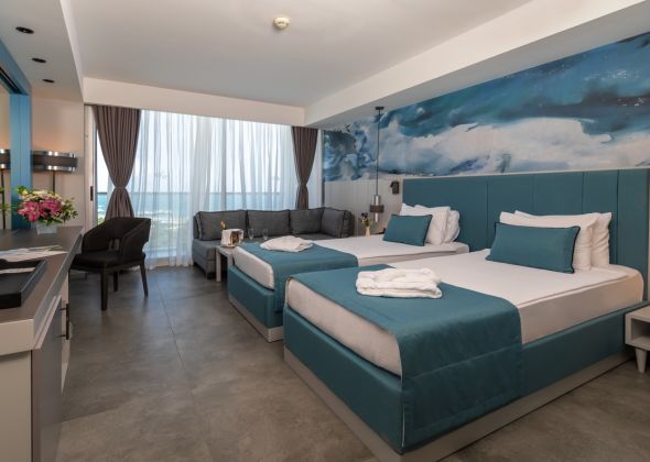 Хотелът разполага с общо 400 стаи, разположени в една 8-етажна сграда Main Building, от които 304 стандартни стаи Standard room (изглед суша или море - 28 м2), 96 Junior Suite Room (2 стаи свързани с врата - 35 м2). Всички стаи са оборудвани с климатик, телевизор, телефон, баня с душ/вана, сешоар, интернет (безплатен), минибар (безплатен), сет за кафе/чай, сейф (безплатен). Почистване на стаите и смяна на кърпи и спално бельо - ежедневно.