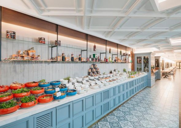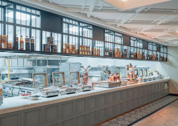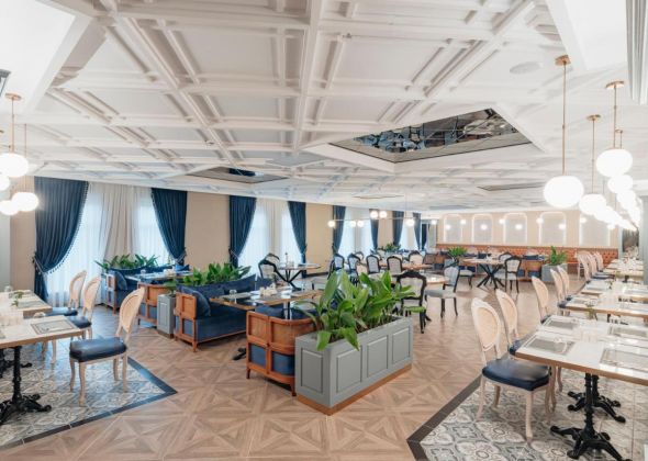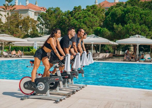 5 ресторанта, пицария, 8 бара, сладкарници, 5 басейна, аква парк