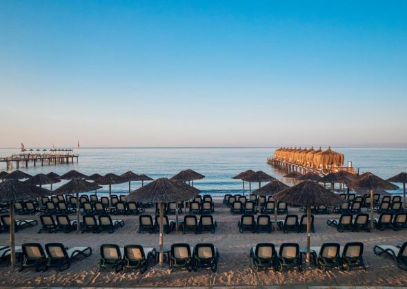 Собствен пясъчен плаж. Шезлонги, чадъри и плажни кърпи на плажа и при басейна - безплатно.