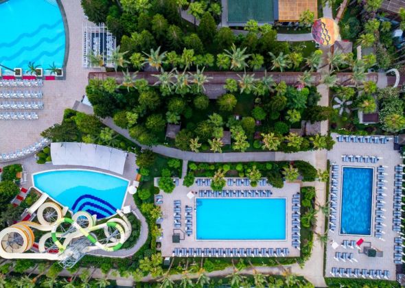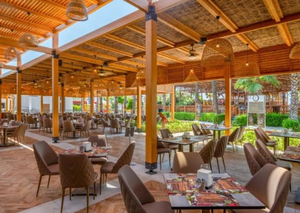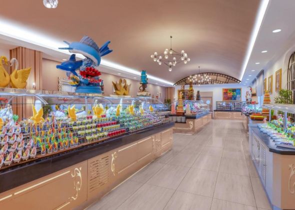 Основен ресторант, 6 а-ла-карт ресторанта (японски, стек ресторант – платени; рибен, турски, италиански, суши, мексикански – 1 безплатно посещение на 1 от ресторантите при минимум 7 нощувки), сладкарница, 7 бара, 4 открити и 1 закрит басейн, аквапарк, кино,  амфитеатър, СПА център, дискотека, магазини, 3 конферентни зали, паркинг.