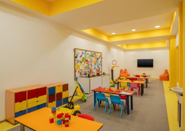 За децата: детски басейн, детска площадка, лунапарк, мини клуб (4-12г), мини диско, детско кино, детска анимация, детска количка (с депозит).