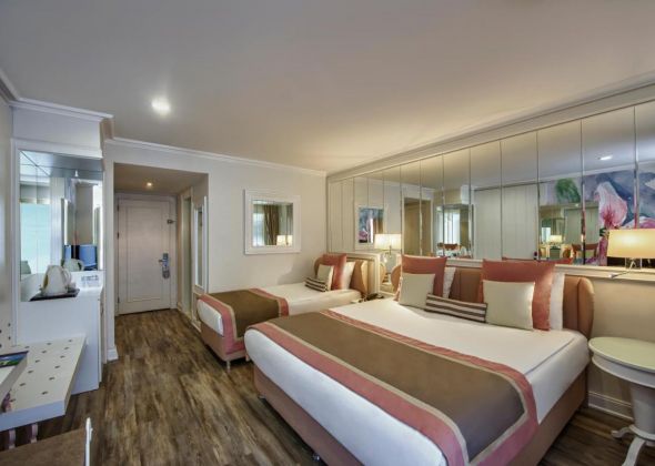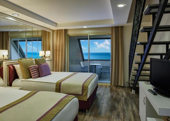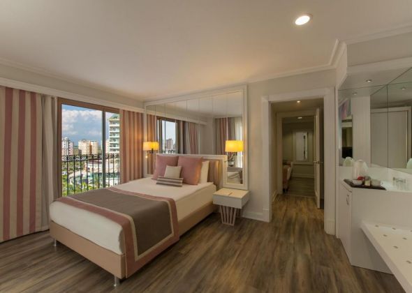 Хотелът разполага с общо 475 стаи, разположени в 6-етажна основна сграда, от които 380 Standard room (26-30 м2), 74 Dublex Family room (на 2 етажа - 2 спални, 2 бани - 47 м2), 1 Black suite room (1 спалня в черен цвят, мека мебел, 1 баня  + джакузи - 91 м2, без балкон), 11  Family room (2 спални, 1 баня - 37 м2), 1 Pink moon suite room (апартамент за младоженци в розов цвят – 1 кръгла спалня, 1 баня + джакузи - 80 м2,с панорамна гледка, без балкон), 1 K1 Suite (1 кръгла спалня, мека мебел, 1 баня  + джакузи - 80 м2 , с панорамна гледка, без балкон), K2 Suite(1 кръгла спалня, мека мебел, 1 баня - 80 м2,с панорамна гледка, без балкон), 1 Deluxe Family room (2 спални, 1 баня + джакузи - 85 м2 + 80 м2  тераса с шезлонги), 1 Presidential Suite ( 1 спалня, хол с трапезария, 1 баня + джакузи - 108 м2 + 60 м2  тераса с чадър и шезлонги).