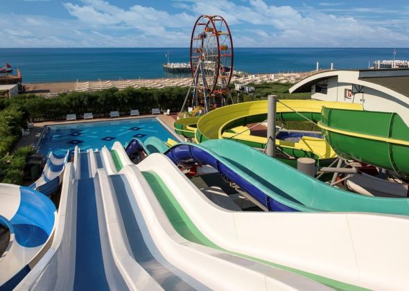 За децата: Детски открит и закрит басейн, водни пързалки, детска площадка, мини клуб (4-12г.), мини диско, детски приключенски парк, детегледачка (платено).