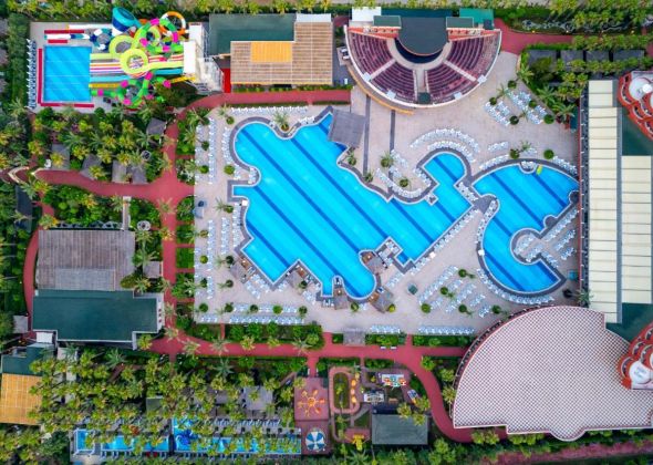 Основен ресторант, 7 а-ла-карт ресторанта (с предварителна резервация), 5 бара, 6 басейна, водни пързалки, магазини, СПА център, дискотека, 3 конферентни зали.