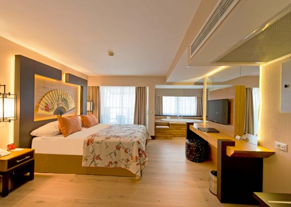 Основен ресторант, 4  а-ла-карт ресторанта  (италиански, източен, турски, мексикански - срещу заплащане), 3 бара, 3 открити басейна,2 детски басейна, закрит басейн с 1 пързалка, аква парк с 9 пързалки, диско, СПА център, конферентна зала, паркинг, анимация,Wi-fi интернет -съгласно концепцията на хотела.