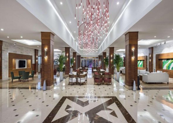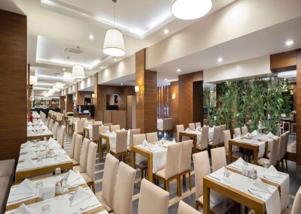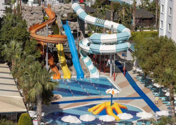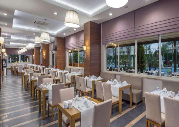 Основен ресторант, 6 а-ла-карт ресторанта (рибен, турски, италиански, азиатски, мексикански – 1 безплатно посещение на 1 от ресторантите при минимум 7 нощувки, барбекю - платен), сладкарница, 6 бара, снек ресторант, 3 открити и 1 закрит басейн, 4 водни пързалки, амфитеатър, СПА център, магазини, паркинг.