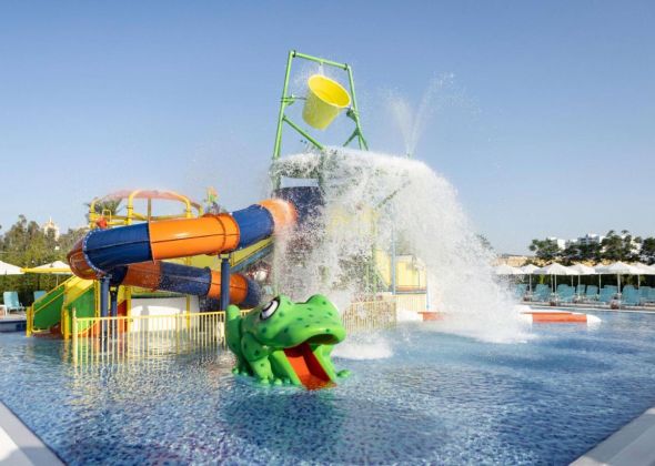За децата: Детски басейн, водни пързали, детска площадка, мини клуб (4-8г), макси клуб (8 -12 г), мини диско, детска анимация, детска количка (под наем).