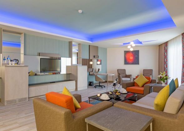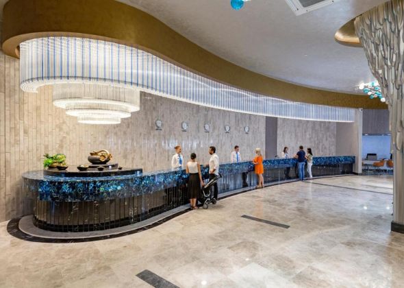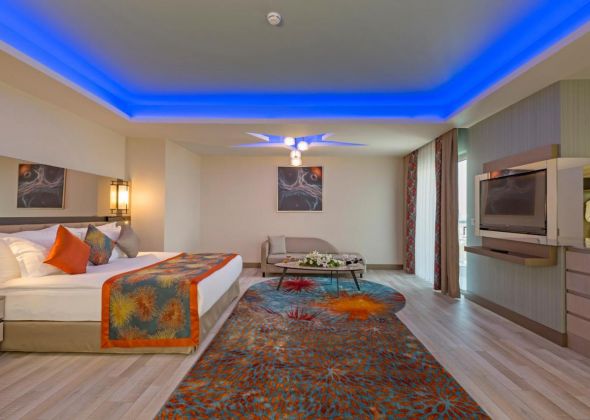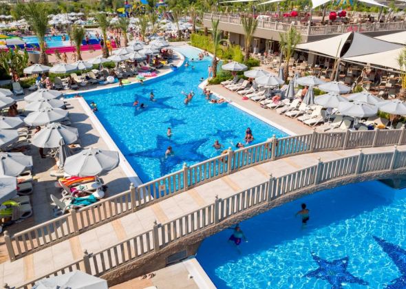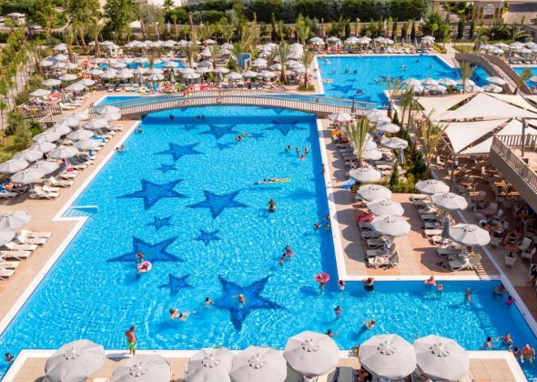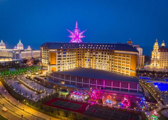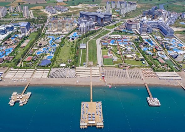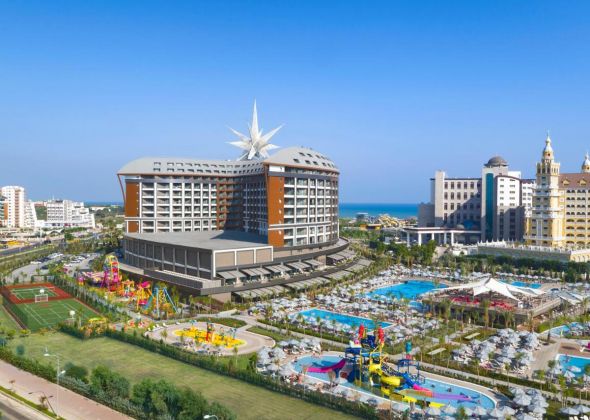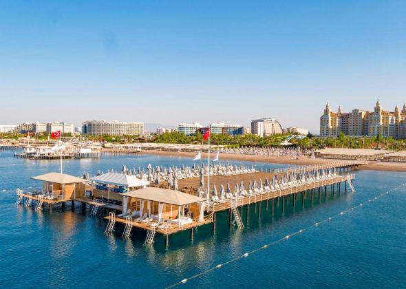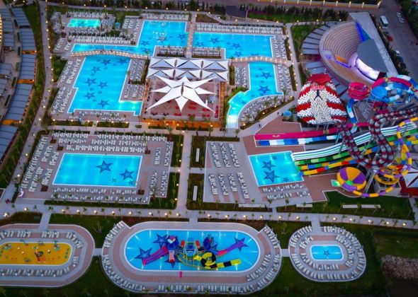 Основен ресторант, 9 а-ла-карт ресторанта (рибен, турски, италиански, средиземноморски, азиатски, суши, барбекю ресторант, мексикански, испански – срещу заплащане и с предварителна резервация, съгласно концепцията на хотела), снек ресторанти, бистро, сладкарница, food корнер, 9 бара, 4 открити и 1 закрит басейн, аквапарк, лунапарк, амфитеатър, професионални музикални и танцови вечерни програми, тематични партита(1 път седмично), дискотека, СПА център, магазини, 11 конферентни зали, паркинг.