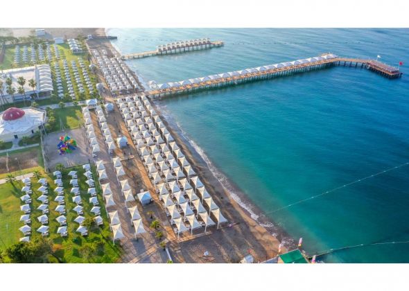 Намира се на 16 км от летище Анталия, на 20 км от центъра на Анталия, на 6 км от центъпа на Лара, на брега на морето. Построен 1999 г., на обща площ от 85 000 м2. Реновиран 2019 г.