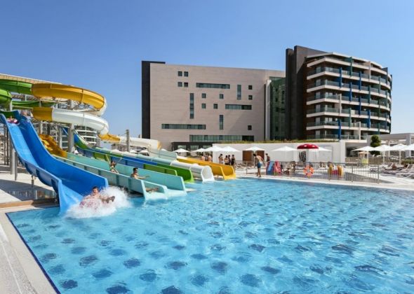 Основен ресторант, 3 a лa карт ресторанта (турски, италиански, рибен - срещу заплащане), сладкарница, 5 бара, 2 открити и 1 закрит басейн, 5 водни пързалки, дискотека, 2 конферентни зали, паркинг.