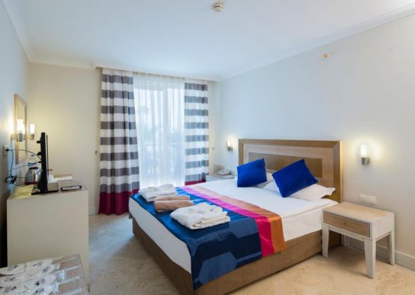 Основен ресторант, а- ла - карт ресторант (турски , италиански и мексикански - с предварителна резервация, един безплатно за 7 нощувки), 7 бара, 1 открит басейн, 1 закрит басейн, WI - FI (безплатно). За децата: Детски басейн, мини клуб (4-12 г.), детско меню, детска площадка. Безплатни услуги: сауна, турска баня, фитнес, тенис на маса, тенис на корт, баскетбол, аеробика, плажен волейбол, мини голф, дартс, кино, анимация. Платени услуги: Масаж, пилинг, СПА център, фризьорски и козметичен салон, магазини, билярд, лекар.