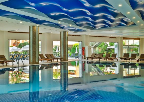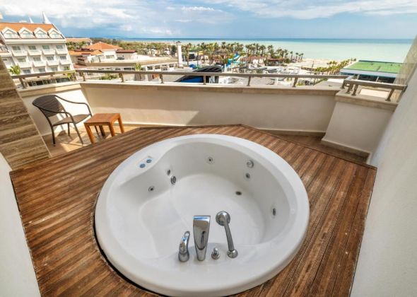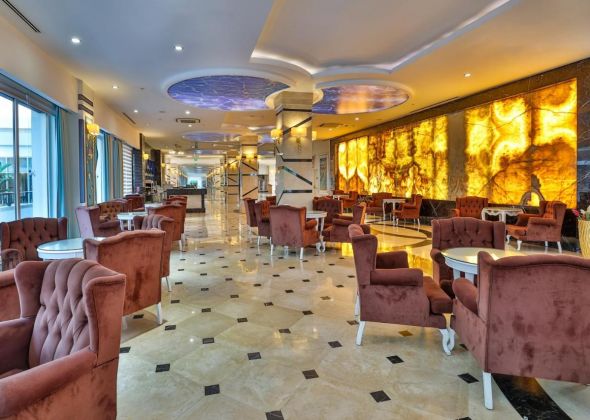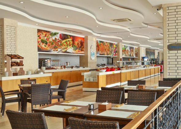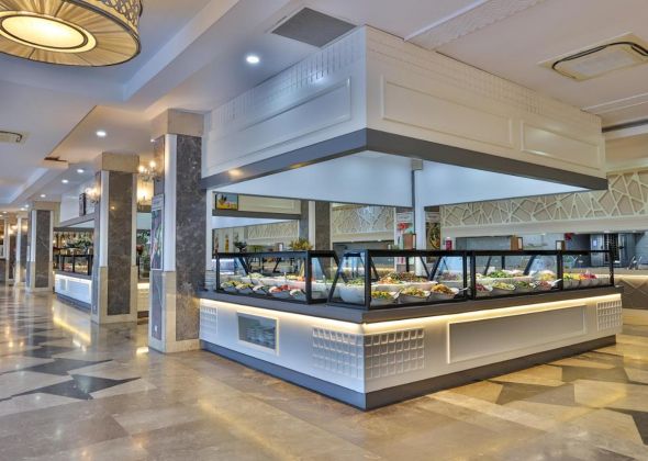 Основен ресторант, 5 a - лa - карт ресторанта ( по едно безплатно посещение по време на престоя ), 7 бара, магазини, Интернет - кафе, безжичен интернет на територията на хотела ( безплатно ), 2 открити басейна, закрит басейн, аква парк, 5 водни пързалки. За децата: мини клуб(4-12г.), 2 детски басейна. Безплатни услуги: турска баня, сауна, парна баня, джакузи, тенис корт, баскетбол, плажен волейбол, фитнес, тенис на маса, водна топка, водна аеробика, дартс, мини голф, кино. Платени услуги: масаж, пилинг, билярд, боулинг, видео игри, джага, осветление на тенис корта, тенис ракети и топки под наем, кану, водно колело, сърф (с лиценз), голф, водни ски, банан, фризьорски салон, СПА-център