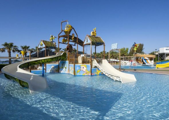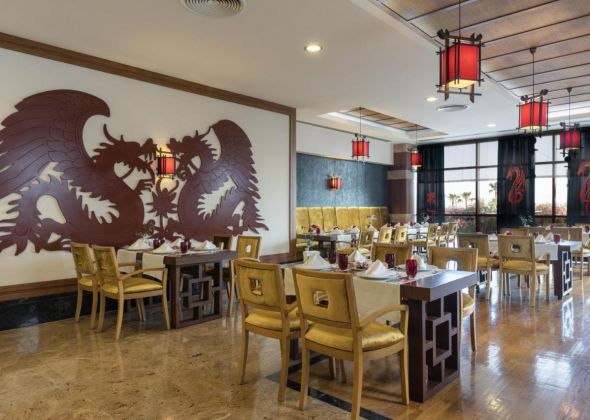 Основен ресторант, 4 a - лa - карт ресторанта (едно безплатно посещение с предварителна резервация по време на престоя), 4 бара, магазини, безплатен интернет в лобито на хотела, открит басейн, закрит басейн, аква парк, 5 водни пързалки.