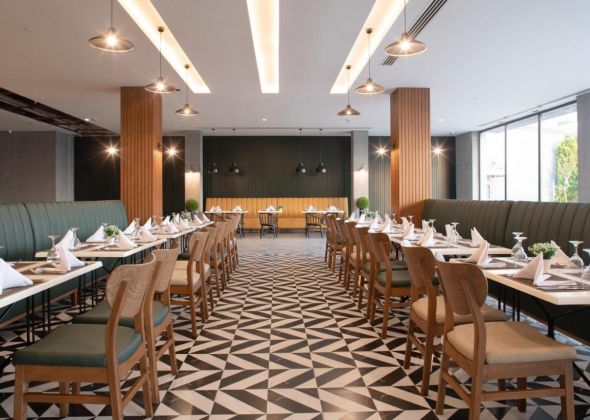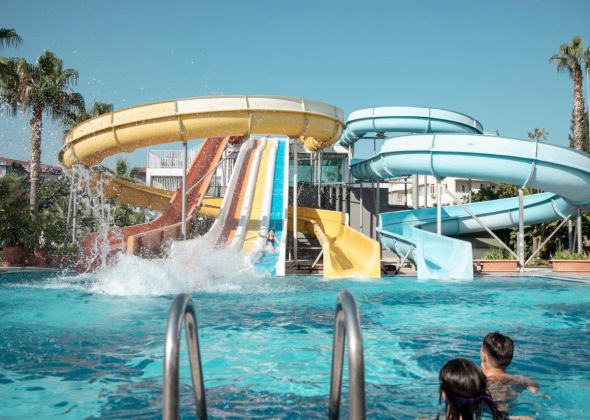 Основен ресторант, 2 а-ла-карт ресторанта (интернационален, италиански – срещу заплащане, с предварителна резервация); (ресторант при аквапарка и ресторант на плажа – срещу заплащане), 6 бара (бар на плажа и кафене – срещу заплащане), 3 открити и 1 закрит басейн, аквапарк с 4 водни пързалки, СПА център, дискотека, магазини, 1 конферентнa залa.