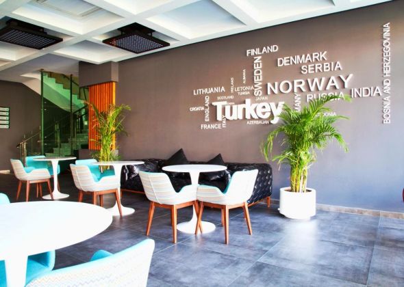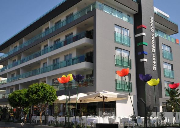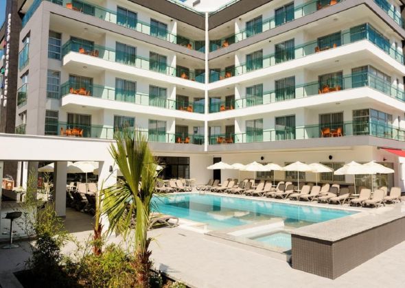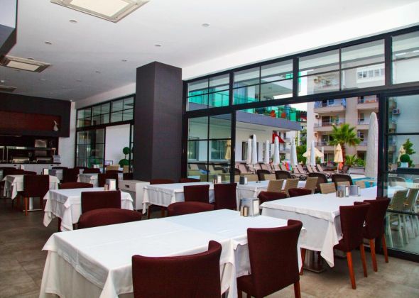 Хотелът се намира на 350 метра от плажа и на 4 километра от Червената кула в Алания.
