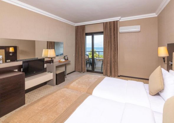 Хотелът разполага с общо 180 стаи, разположени в една основна сграда, от които Standard land/sea view (27м2), Suite room (50м2).Всички стаи са оборудвани с климатик, телевизор, телефон, баня с душ/вана, сешоар, минибар (вода- безплатно), сет за кафе/чай, сейф (безплатен), WI-FI интернет.