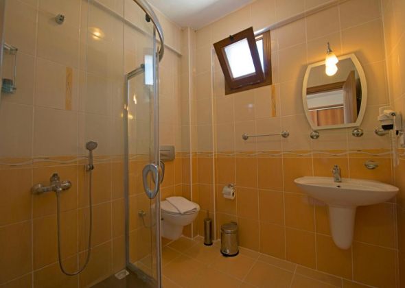 Собствен – пясъчен. Чадъри, шезлонги, матраци на плажа и при басейна – безплатно.