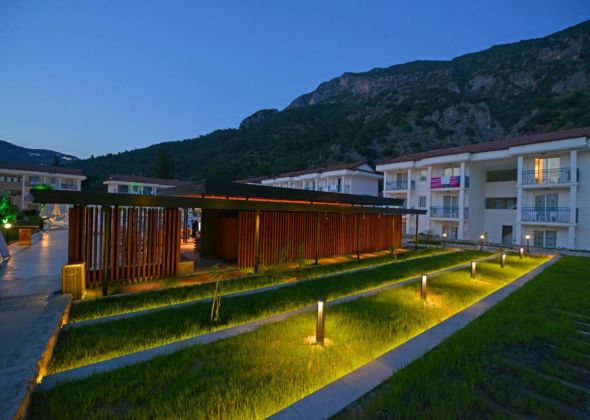 Хотелът се намира на 35 км от летище Даламан, в центъра на град Олудениз, на брега на морето.