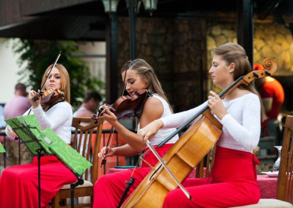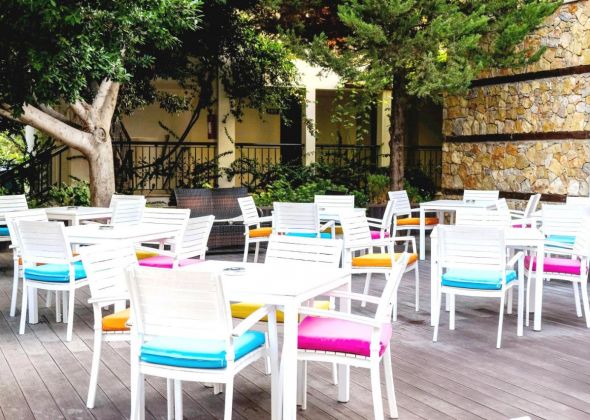 Основен ресторант, а-ла-карт ресторант, снек-ресторант, лоби бар, бар Аполон, бар Аракса. Басейни: голям олимпийски басейн (350 м2), релакс басейн в тиха зона за лица над 16г (110 м2), детски басейн (12 м2) - при басейните безплатно се предоставят чадъри, шезлонги и плажни кърпи; фитнес и сауна (безплатно); анимация с тематични вечери, шоу програми и партита, музика на живо; аква фитнес, дартс, водно поло, тенис на маса, билярд, шах, библиотека, турска баня и масажи (платено). За децата: детски басейн, детски клуб, детска анимация, детска дискотека, рисуване по лицата, дартс.
