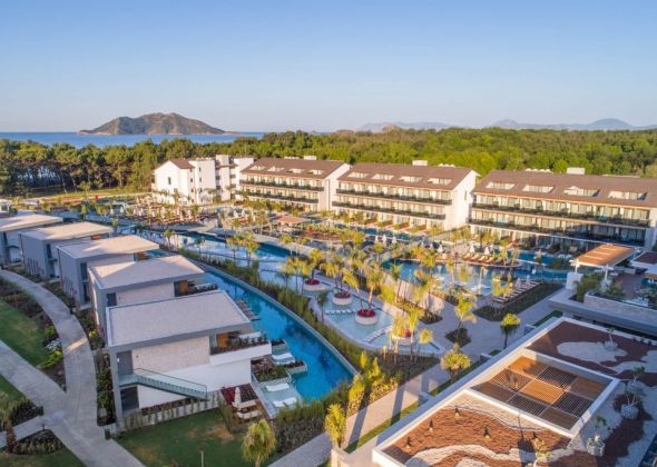 Намира се на 37,3 км от летище Даламан, на 13 км от центъра на град Фетие и на 8 км от Çalış. Разположен е на дълъг плаж, сгушен на малък частен залив. Хотелът е прегъчнат от живописни природни пейзажи. Построен e като част от веригата Akra Hotels през 2015 г на обща площ от 65 000 кв. м. 5-звездният хотел е носител на международни награди и е префектното място за релакс и забавление – за възрастни и за деца.
