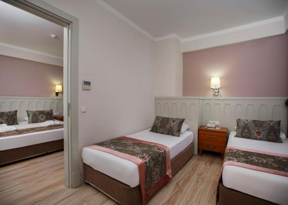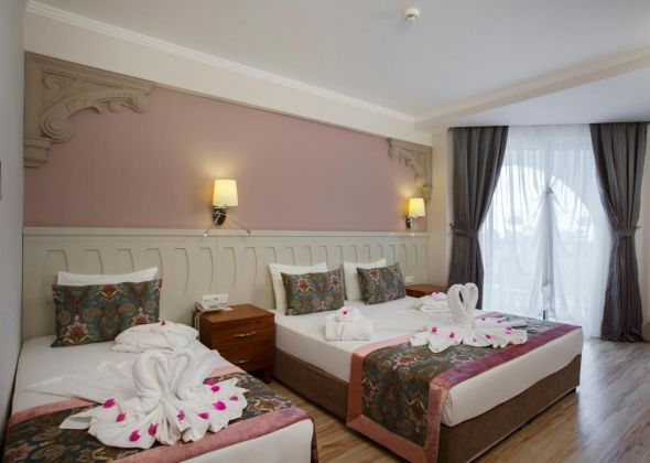 Хотелът разполага с общо 344 стаи, от които разположени в 4-етажна основна сгради и 1 допълнителна сграда, от които Standard Room Land View (изглед суша - 28 м2), Standard Room Pool View (изглед басейн - 28 м2), Family Room (2 отделни спални, 1 баня - 36 м2), Economy Room (без балкон - 18 м2).