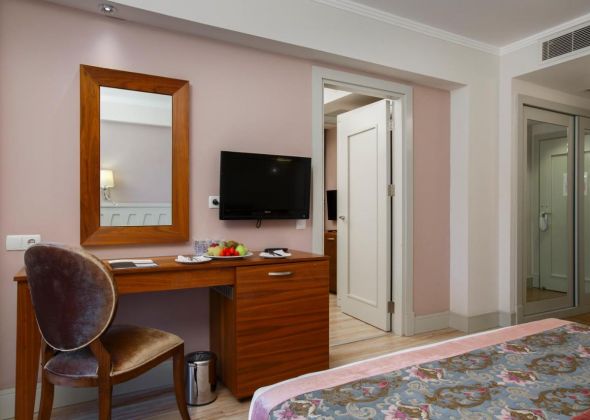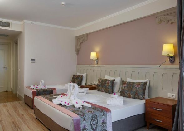 Основен ресторант, 2 а-ла-карт ресторанта (турски, италиански – 1 безплатно посещение на 1 от ресторантите при минимален престой от 5 нощувки, с предварителна резервация), сладкарница, 3 бара, снек бар на плажа, 1 открит и 1 закрит басейн, аквапарк с 3 водни пързалки, СПА център, магазини, паркинг.