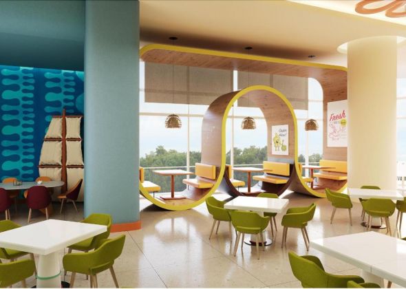 Основен ресторант, лоби бар, ресторант Character Dining (в ресторанта се организират шоу програми с участието на герои на Nickelodeon - срещу заплащане), снек лаундж и бар (срещу заплащане), витамин бар (срещу заплащане), открит басейн (отопляем в определени от хотела периоди), аквапарк, СПА център.